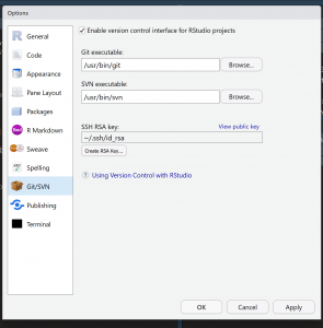 流程:上方Tools -> Global Options -> Git/SVN -> Create RSA keys -> View public key 然后都跟着提示来,这样你就创建了一个用于SSH连接的RSA秘钥,复制之 。